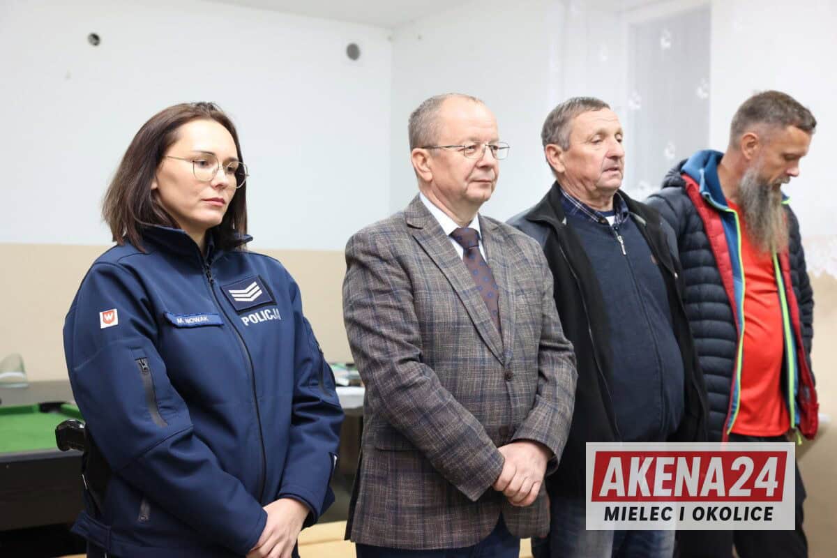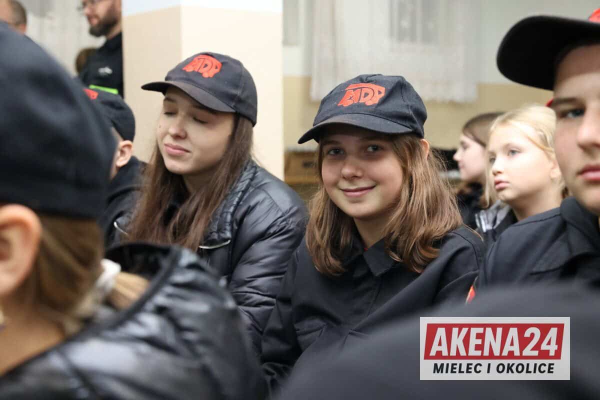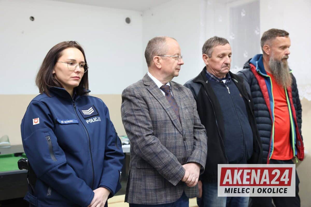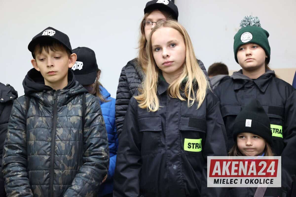Sierż. szt. Marta Nowak z mieleckiej komendy omówiła zasady bezpiecznego poruszania się po drogach i kluczowe znaczenie elementów odblaskowych dla widoczności pieszego. Dla najmłodszych uczestników przygotowała specjalne miasteczko ruchu drogowego, gdzie dzieci mogły w praktyczny sposób przećwiczyć zasady ruchu drogowego, rozpoznawanie znaków oraz bezpieczne sposoby przechodzenia przez przejście dla pieszych – zarówno z sygnalizacją świetlną, jak i bez niej.