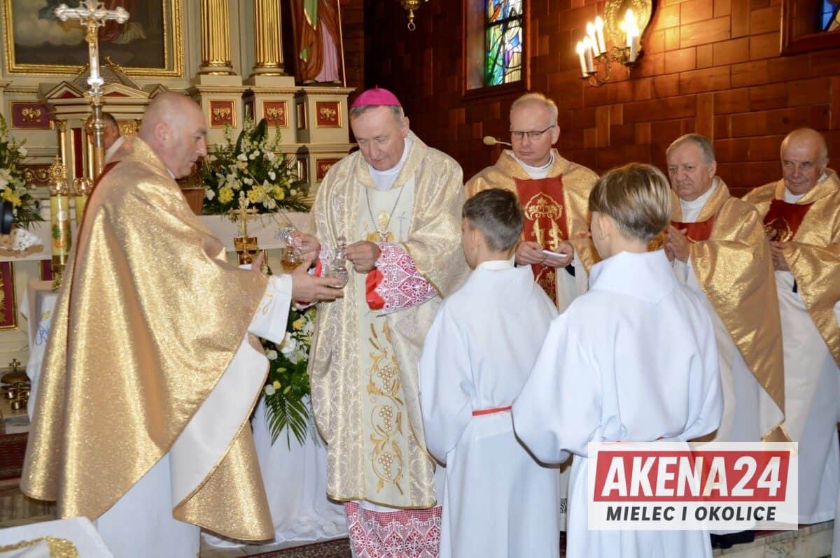 Uroczystość rozpoczęła się Mszą Świętą w kościele parafialnym, której przewodniczył Jego Ekscelencja Ksiądz Biskup Andrzej Jeż, Ordynariusz Diecezji Tarnowskiej.