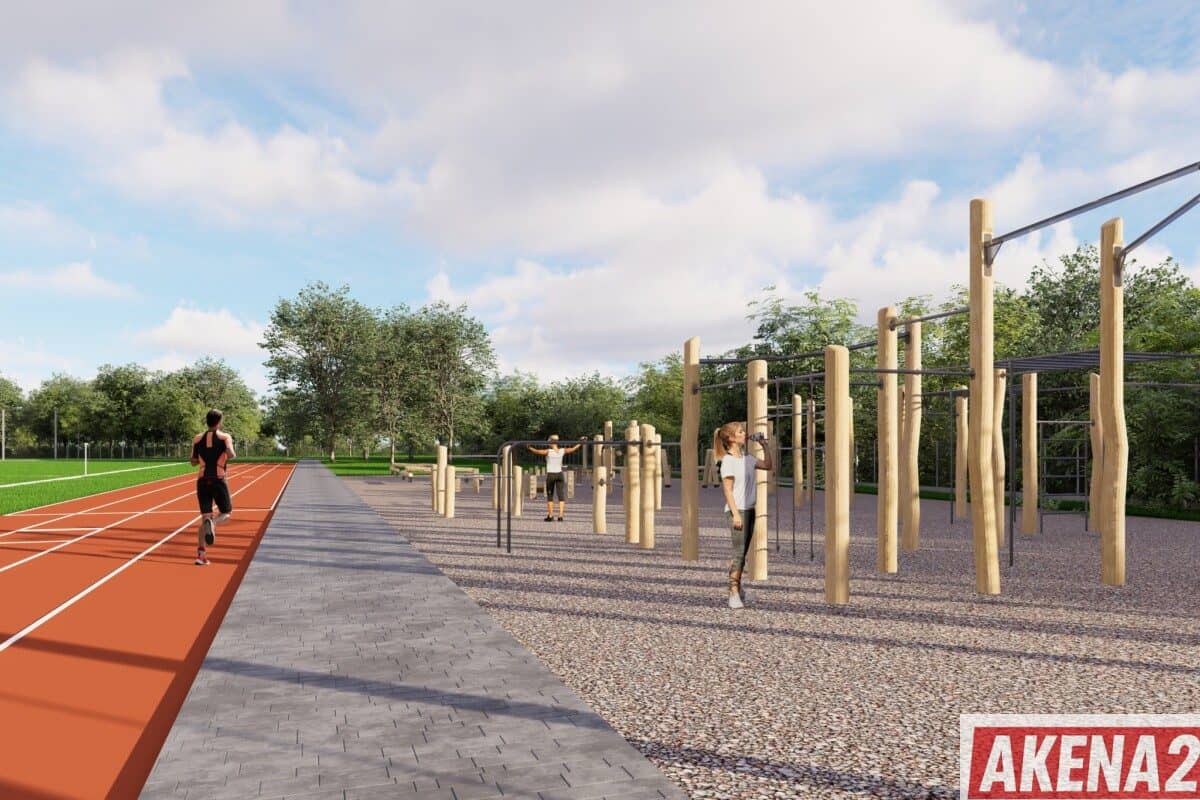 - 4 torowa bieżnia lekkoatletyczna wraz z belką i miejscem do skoku w dal.